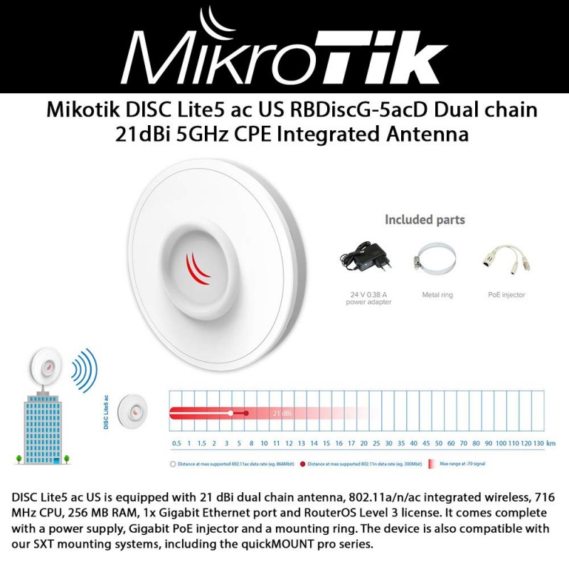 Outdoor 5GHz 802.11a/n/ac wireless device with a backfire type 21dBi integrated antenna and Gigabit Ethernet for longer distances